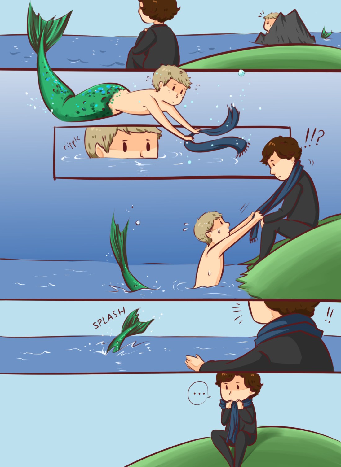 There’s this human who comes to sit beside the bank once a week. He always looks cold. Maybe this scarf will help…although I hope he doesn’t mind that it’s wet. I like the way his face changes when he smiles. I think I would like to see him smile more often.