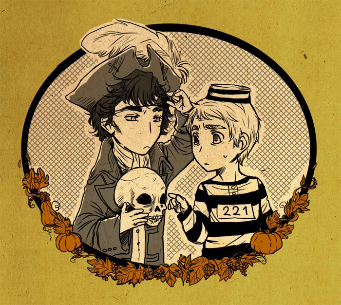 My Halloween pic number 3 , BBC Sherlock, John and skull!!! XD