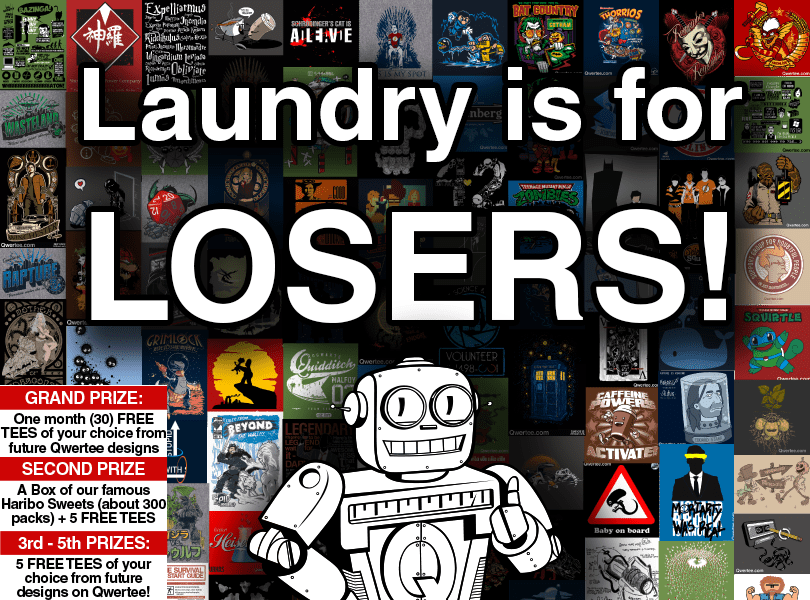 Here at Qwertee.com we’re not content with selling great limited edition tees at the super price of £8/€10/$12 every day, we love to give away great prizes too! So this week we’re giving away no less than a Month of FREE TEES to one Lucky Winner as well as lots of other great prizes!!!