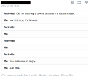 because bow ties totally didn’t exist before doctor who nope ladykarasu1 June 2, 2014December 6, 2018 Published by ladykarasu1 View all posts by ladykarasu1 Published June 2, 2014December 6, 2018