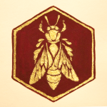 I’ve been experimenting with bees and gold ink! Also my scanner crapped out, which is just as well because the ink looks better photographed than scanned.
