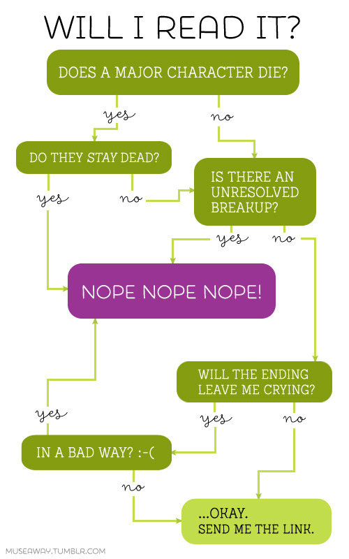 I made a flow chart illustrating the sophisticated process I use to weed through fics.