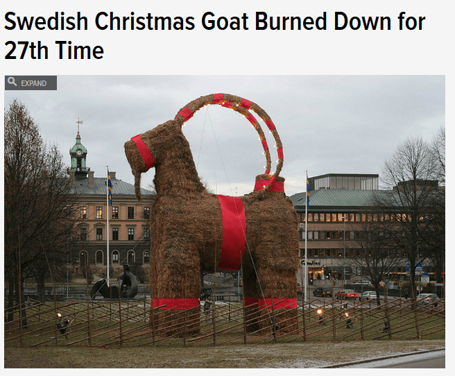 the best part of christmas for a swede: betting with friends whether the goat will burn or not. haha