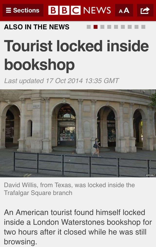 The best bit was he tweeted Waterstones and politely asked them to let him out.