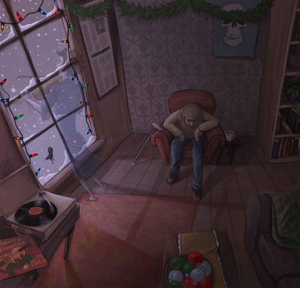“You don’t make a big deal of it,” Mary had explained as he had unwrapped the box, “but you love music and, well…I saw you drooling over this record player a few weeks ago and…oh hell — It’s too much, isn’t it? I went too big? I just knew you’d like it and—"John had cut her off with a gentle kiss. “It’s amazing and I love it. YOU’RE amazing. Of course, now I’m going to have to go start trolling the vintage vinyl shops and get a respectable collection up and running again.”"Oh! Wait! I have a start for you. I know it’s a little silly but…it’s Christmas. And a man in the store said I shouldn’t get you a record player and nothing to play on it, and he suggested that this would be festive, but would allow you to choose your own collection.” She’d handed him an unwrapped sleeve adorned with a semi-tasteful pile of holiday frippery and looping gold cursive text proclaiming the record full of ‘Holiday Favorites" and that they were “On Violin!" Most likely, the store over-ordered and was instructing every employee to push the record on unsuspecting customers.He’d smiled and kissed her cheek. “It’s lovely. Truly. It’ll make the flat positively cheery. Perhaps even jolly.”They’d giggled and sipped tea together while the first few flakes of an unexpected Christmas snowstorm fell and it wasn’t until after Mary had left to meet with her sister for an early lunch that he’d remembered the record. It seemed as though it might be a nice accompaniment to his dinner preparations.The first few strains of Silent Night had caught him off guard for a moment. Just hearing the echoing sighs of a violin inside 221b after so much time was…startling. He’d smiled sadly and then shaken himself back into the present. And once he got over the initial shock, the music really was quite nice. Actually cheery.Until a quiet, haunting solo version of I’ll Be Home For Christmas poured out of the speakers. He’d sunk down in his armchair and just listened for the length of the song, tea forgotten next to him. When it ended, he’d remained sitting for the next two songs, fighting prickles at the corners of his eyes.Mary returned a few hours later, as he was pulling together the last minute details for dinner."John, I tell you, we haven’t had a storm like this in YEARS, and for Christmas no less…” Her voice grew muffled as she struggled out the many layers of protection she was wearing against the weather. “Rather charming I suppose, though. Dinner smells amazing, love.” As she walked through the living room, she noticed the record on the turntable. “So you filled the place with holiday cheer this afternoon, did you?"John glanced over, confused for a moment, and saw what she was looking at. He cleared his throat. “Yes…it was. Actually…quite good. I enjoyed it. You’ll have to thank the man at the shop for me. It was…just the thing.”Mary didn’t even look back at him as she absently rearranged a few small items on the mantle. “Oh, he wasn’t an employee,” she said off-hand. “Just some bloke. Tall.”———————————————————————-In which I faff about with perspective and lighting in ways that surely are not in the least bit accurate to the laws of physics.NO.