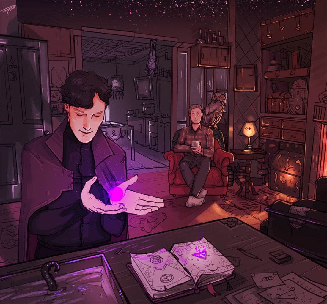 “Somewhere, across time and space in a little shop with a bell on the door and an owl sleeping in a cage of her own volition, John is in awe of Sherlock. He is still learning: a little witch, Sherlock calls him, and he allows it because he knows it is a reference to his years and his tutelage, not his size. Though John thought himself to be quite grown, knowing Sherlock has allowed him to realize how little his time on this earth has been. He is so ready for more of everything.”