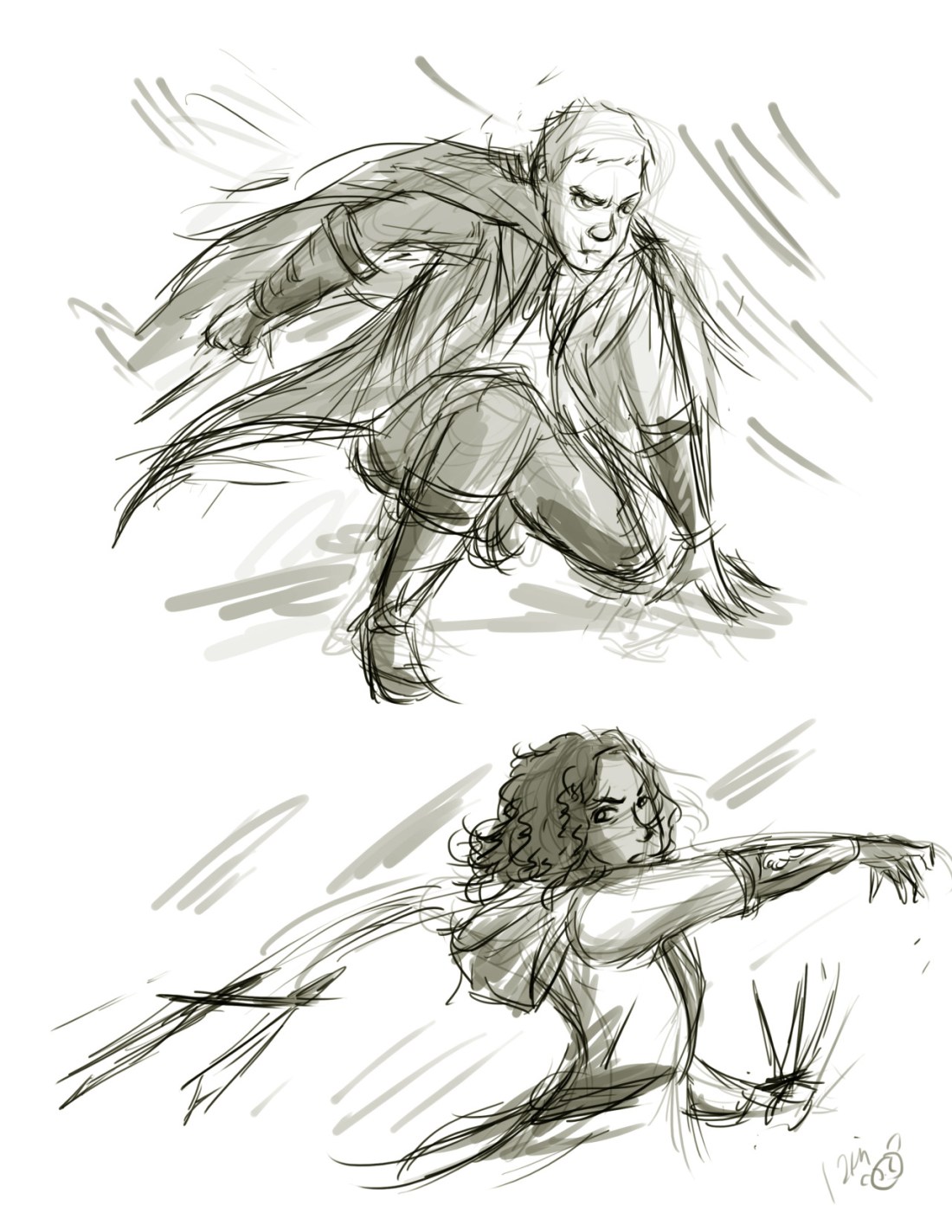 Taking a break from drawing cars. Assassin John and assassin Sally. Assassin John now has a lip scar because the main assassins have facial scars and I couldn’t resist.