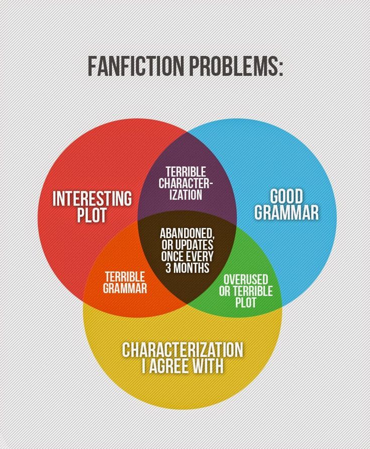 Okay, returning to the “writer’s problems” venn diagram(s). This is a list, so it doesn’t translate well to the medium being parodied. Extra problem: it doesn’t really work as a rebuttal of the original? This is because most of the points being addressed aren’t actually relevant to the original diagram and therefore don’t have parallels. (Whole aside here about how I find both the reader *and* writer problems diagrams funny, and in no way invalidating of each other. I AM AT THE CENTER OF THE VENN DIAGRAM OVERLAPPING THESE PROBLEM SETS, OK.)