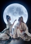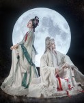 According to Chinese legend, the white Jade Rabbit (玉兔) is a companion to the beautiful moon goddess Chang’e (嫦娥), and pounds the Elixir of Life for her with its mortar and pestle under a cinnamon tree. Chang’e and the Jade Rabbit live in the Moon Palace, and can be seen every year in full view on the day of the Chinese Mid-Autumn Festival. Jade Rabbit – Coser小梦 (read about him here); Chang’e – 真的菜菜.
