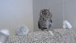 フクロウのクウちゃん、水浴びから乾燥まで / Screech Owl having a bath and then being dried.