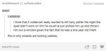 In Prisoner of Azkaban, Lupin tells Harry the dementors affect him worse than the others because he has horrors in his past that others haven’t got. But why would his worst experience be the night his parents died, something he doesn’t actually witness, remember, or understand? Surely that’s nothing compared to the encounter with the giant-ass snake that nearly killed him in the Chamber of Secrets.