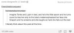 I’m sure its name’s something cutesy like ‘Cuddlebert’ because Hagrid raised it from a teensy little blob with teensy little tentacles and it still remembers him as its ‘Mum’. Now and then Hagrid goes down to the lake when no one’s around with an enormous barrel of fish and feeds Cuddlebert, who hugs him with its enormous tentacles, nearly squishing Hagrid while almost drowning him, and yet Hagrid sloshes back to his little house on the grounds with the biggest, soppiest grin on his hairy face.