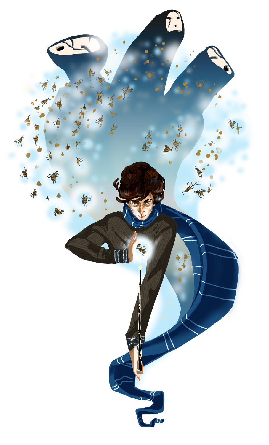 Sherlock’s patronus charm appearing as a bee and then a SWARM of bees when it’s really powerful because it’s a collection of all of his John memories put together and John’s presence in his life is the strongest happy thing Sherlock has :’)