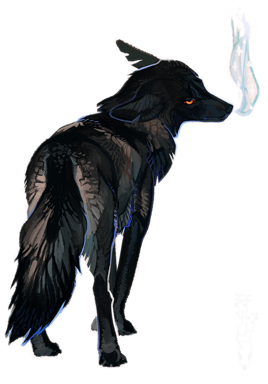 Ash-coloured dragons that spread their wings to show the brilliant red, orange, and yellow feathers on the underside, rising like a Phoenix.
